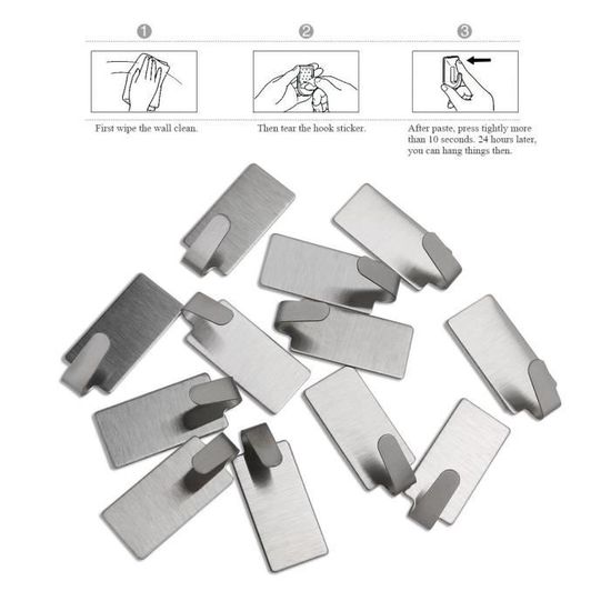 12x Crochet Fixation Murale 1mm – Crochet Serviette Adhésif Salle de Bain en Acier Inox
