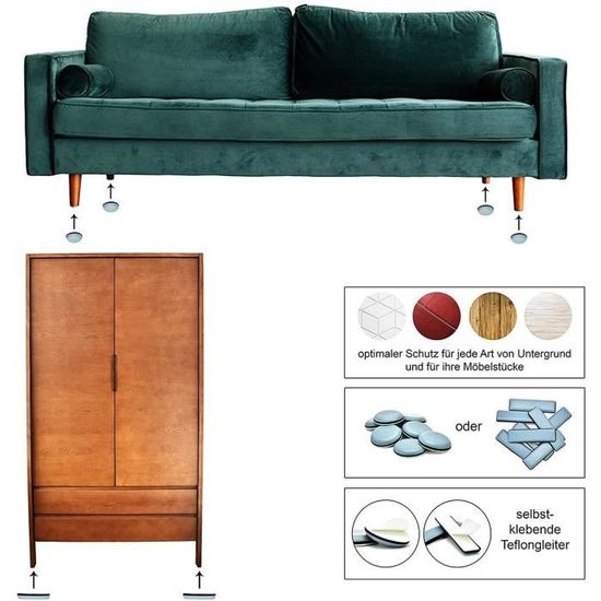 - Silence et douceur : Dites adieu aux bruits gênants lorsque vous déplacez vos meubles. Les patins en téflon glissent en douceur sur toutes les surfaces, rendant vos déplacements silencieux.
