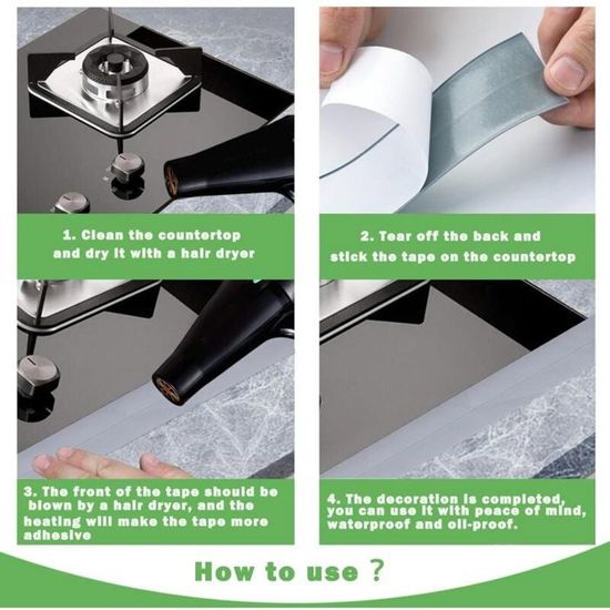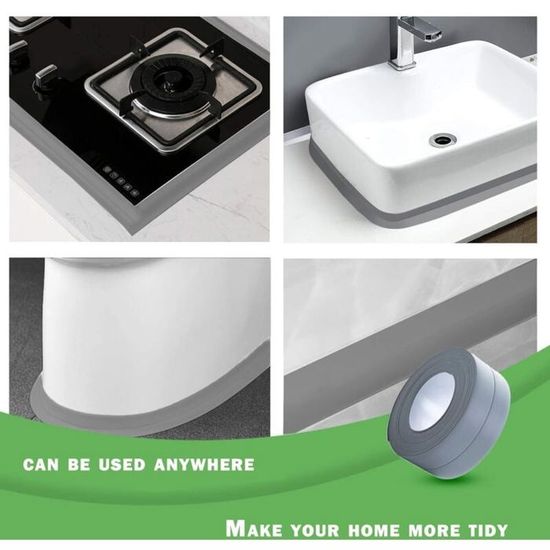 Ce ruban adhésif est idéal pour de nombreuses applications : il convient parfaitement aux joints de baignoires, lavabos, salles de douche, plans de travail de cuisine, toilettes, éviers, et même aux coins, fenêtres et portes. Il prévient efficacement l’apparition de moisissures et de taches noires, vous assurant une maison propre et bien rangée pendant longtemps.