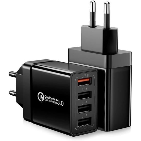Découvrez notre pack de 2 chargeurs rapides 33W avec 4 ports USB, parfaits pour recharger simultanément tous vos appareils. Grâce à la technologie Quick Charge 3.0, bénéficiez d’une charge rapide et sécurisée pour vos smartphones et tablettes. Idéal pour la maison, le bureau ou en voyage, ce chargeur s’adapte à tous vos besoins de charge.