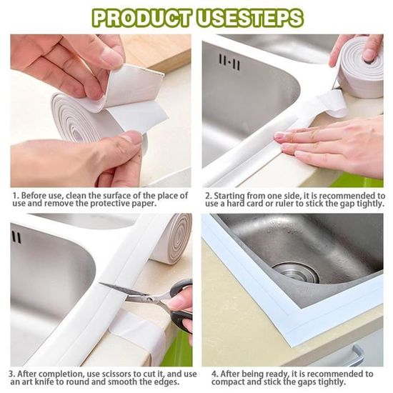Ce ruban adhésif est largement utilisé dans différents espaces : il est parfait pour sceller les bords de votre évier, de votre baignoire, ainsi que pour combler les espaces entre les murs et les coins du sol. Grâce à sa flexibilité, il s’adapte à toutes les surfaces et vous permet de réaliser des finitions impeccables.