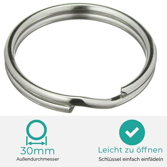 200 Anneaux pour Porte Clé en Acier à Ressort 30mm – Solides – Brillant