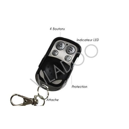 Cette télécommande est conçue pour s’adapter à une large gamme de récepteurs radio à code fixe. Avant de procéder à l’achat, n’oubliez pas de nous contacter afin de vérifier la compatibilité de votre modèle avec celui-ci. Notez qu’elle n’est pas compatible avec les télécommandes à code tournant (Rolling code).