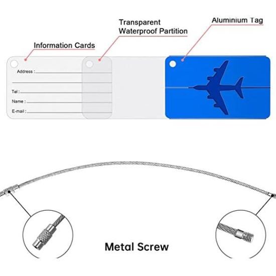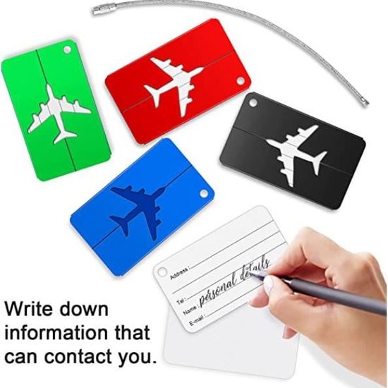4 Étiquettes à bagages en aluminium avec carte pour informations personnelles