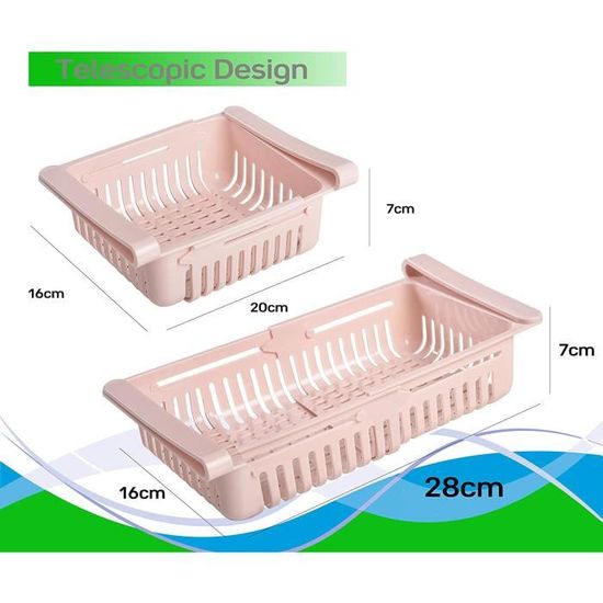 - Polyvalence : Idéal pour le réfrigérateur, mais également parfait pour les placards, la cuisine ou même le bureau, ce tiroir s’adapte à tous vos besoins de rangement.