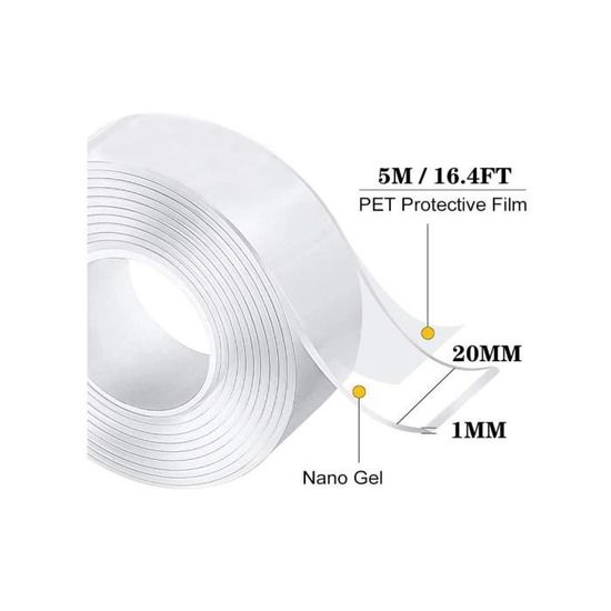 - Adhérence Puissante : Grâce à sa composition en gel Nano-pu, notre ruban adhésif assure une fixation solide sur presque toutes les surfaces, qu’elles soient lisses, propres ou non poreuses.