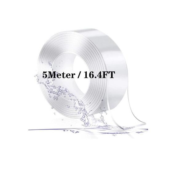 5M Ruban Adhésif Double Face Extra Fort, Nano Tape Transparent Lavable, Amovible Traceless Double-Face Gel