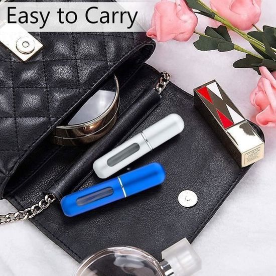 Découvrez notre ensemble de 2 flacons de parfum, parfaits pour tous les amoureux des fragrances qui souhaitent emporter leurs parfums préférés partout avec eux. Avec une capacité de 5ml chacun, ces vaporisateurs mesurent seulement 8 cm x 1,7 cm, ce qui les rend extrêmement faciles à transporter. Que vous soyez en voyage, en vacances ou en déplacement professionnel, ces flacons compacts se glissent aisément dans votre sac ou votre poche.