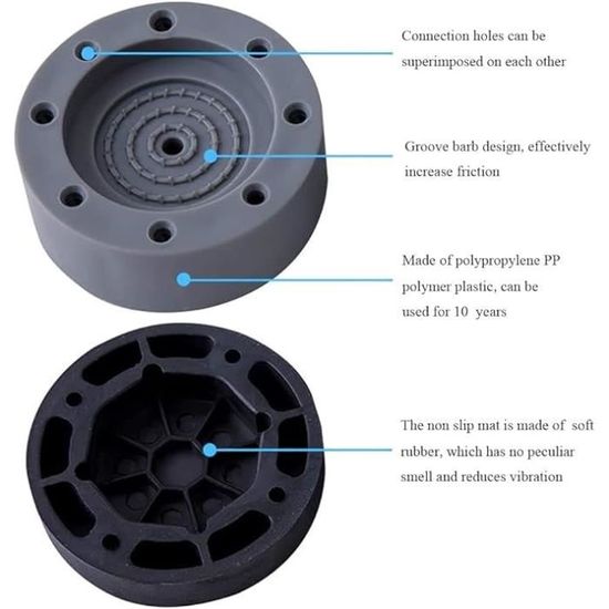 • Facilité d’installation : Les patins sont faciles à installer et s’adaptent à la plupart des modèles de lave-linge et sèche-linge, vous permettant de profiter rapidement d’un environnement plus calme.