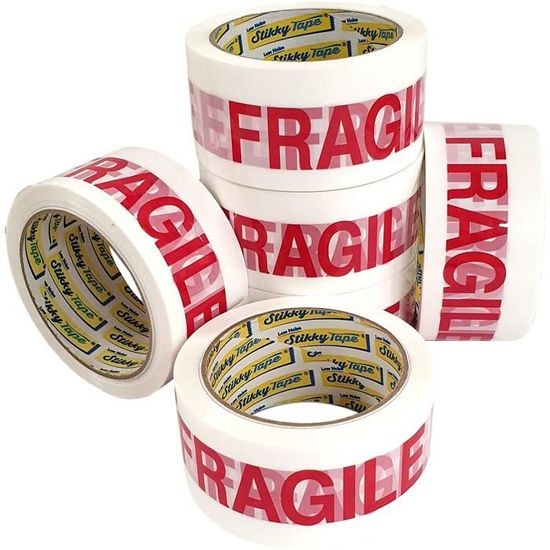 • Design visible : Le ruban est de couleur blanche, arborant le mot “fragile” imprimé en grandes lettres rouges, garantissant une visibilité maximale. Cela permet d’informer clairement tous ceux qui manipulent vos colis de leur fragilité.