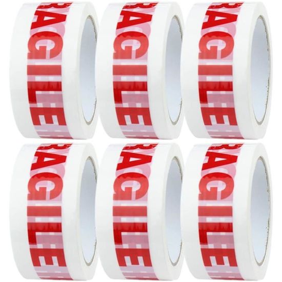 Pack de 6 rouleaux de ruban adhésif imprimé ‘Fragile’ – 48 mm x 66 m pour un emballage sécurisé
