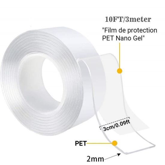 【Super adhésif et sécurité】 Fabriqué avec des matériaux nano écologiques, ce ruban adhésif double face est non toxique, antidérapant et super adhésif. Il est également facile à décomposer avec de l’eau. Chaque rouleau mesure 3 mètres (10 pieds) et est proposé en lot de 2.