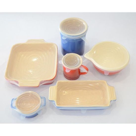 Notre set comprend six tailles différentes : 2,75″, 3,9″, 5,1″, 5,7″, 6,7″, et 8,3″. Ces tailles variées vous permettent de couvrir une multitude de récipients, qu’il s’agisse de bols, de plats ou même de fruits et légumes. Fini les problèmes de taille, ces couvercles s’étirent pour s’adapter parfaitement à vos contenants, garantissant ainsi une conservation optimale de vos aliments.