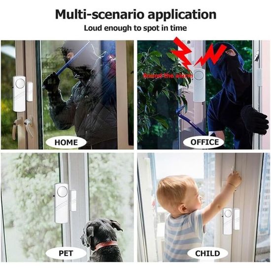 - Sécurité Maximale : Avec un volume d’alarme de 90 dB, ces dispositifs émettent un son puissant pour alerter votre entourage en cas d’intrusion, dissuadant ainsi les cambrioleurs.