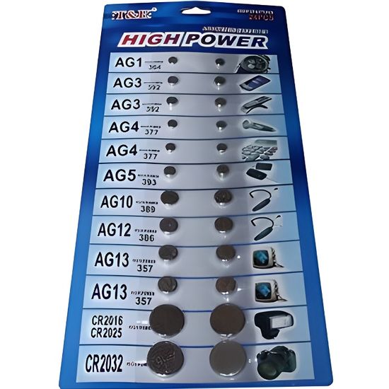 Découvrez notre assortiment de 24 piles bouton, idéal pour répondre à tous vos besoins en énergie. Avec une sélection variée comprenant des modèles courants tels que LR41, LR44 et CR2032, vous ne serez jamais à court d’énergie pour vos appareils. Profitez d’un envoi rapide depuis la France pour un service optimal.
