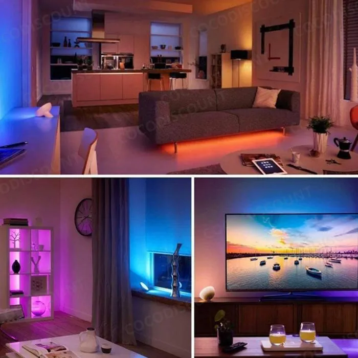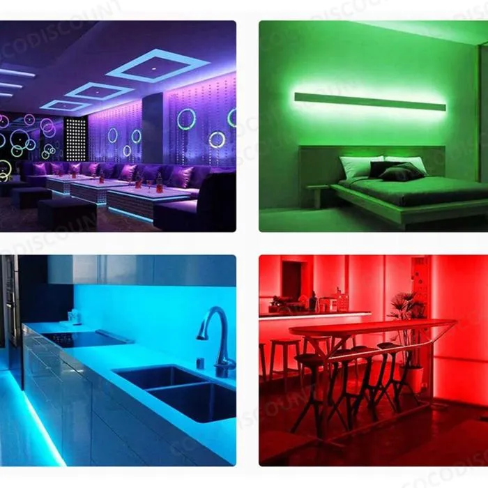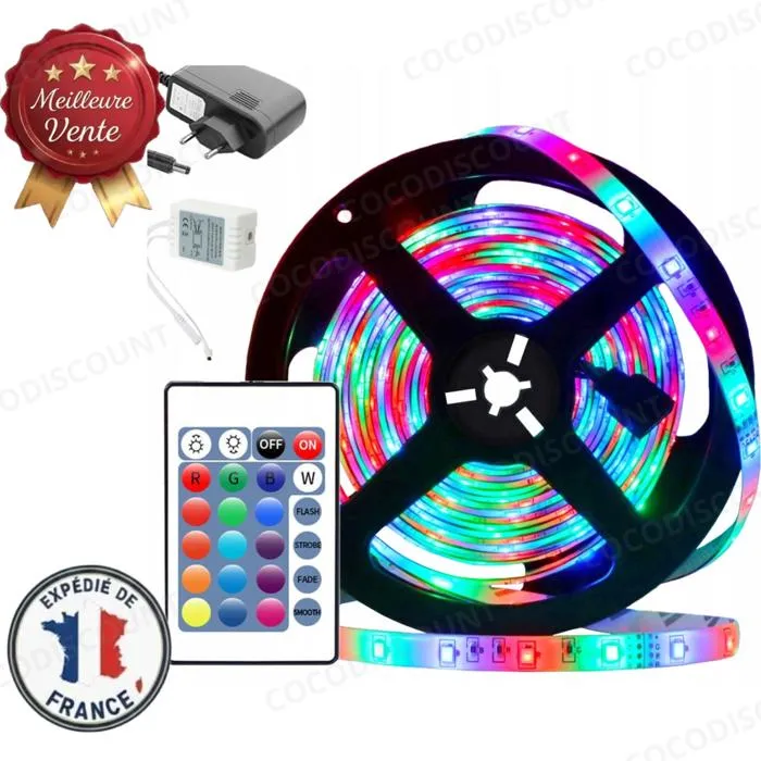Le kit complet comprend le ruban LED, le bloc d’alimentation, le contrôleur et la télécommande, garantissant une installation rapide et simple. Avec son efficacité énergétique A+, ce ruban LED RGB étanche allie performance, style et économie d’énergie, créant instantanément une atmosphère lumineuse colorée, festive ou relaxante dans vos espaces.