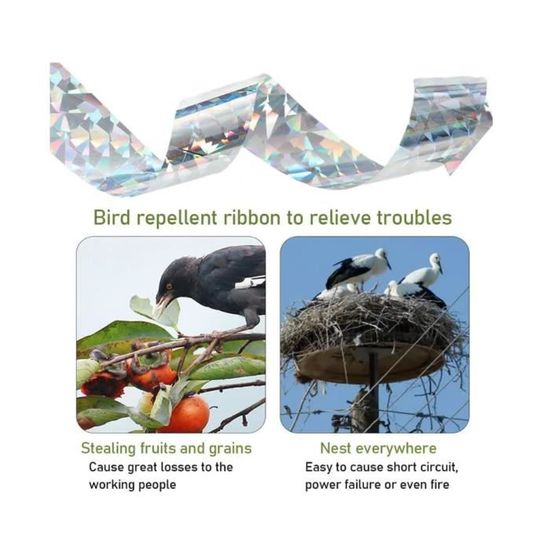 Bande Repulsive Anti-Oiseaux 50m – Ruban Holographique Non Toxique et Résistant aux Intempéries