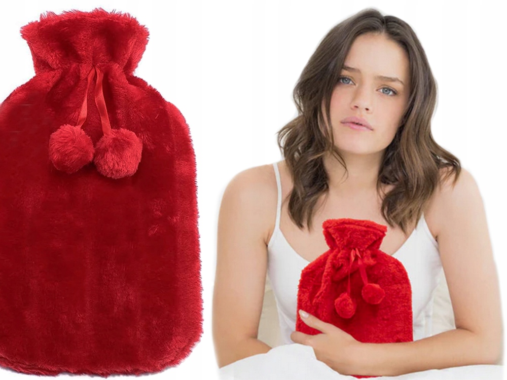 Bouillotte en caoutchouc avec housse polaire douce rouge – grande taille