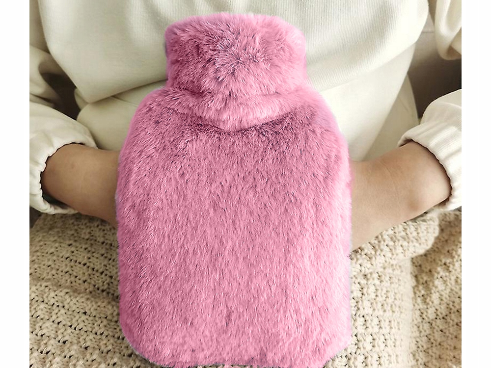 Bouillotte 1700 ml avec housse douce rose amovible. Utilisable chaude pour réchauffer ou froide pour apaiser douleurs musculaires et articulaires. Caoutchouc épais sécurisé, pratique, facile à remplir et idéale pour un confort et bien-être quotidiens.