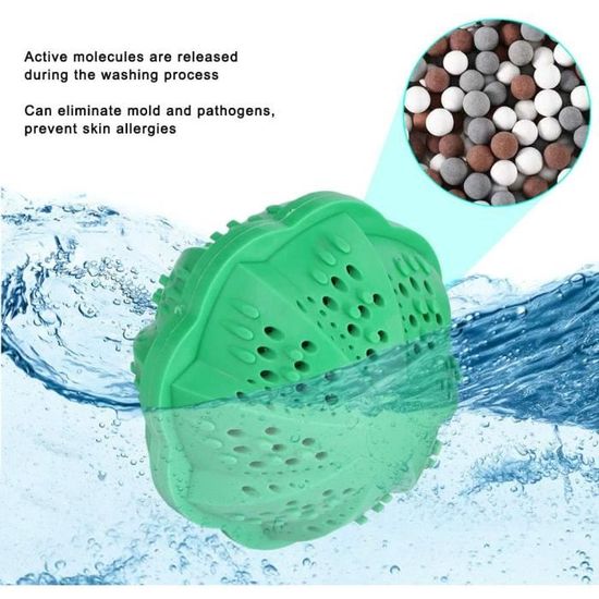 Conçue sans détergent, notre boule de lessive libère des molécules actives pendant le processus de lavage, ce qui aide à nettoyer rapidement et en profondeur vos vêtements. Elle est capable d’éliminer les moisissures, de neutraliser les agents pathogènes et de prévenir les allergies cutanées, faisant d’elle un allié indispensable pour les peaux sensibles. Que ce soit pour des vêtements de tous les jours ou pour des textiles délicats, cette boule est votre solution de lavage polyvalente.