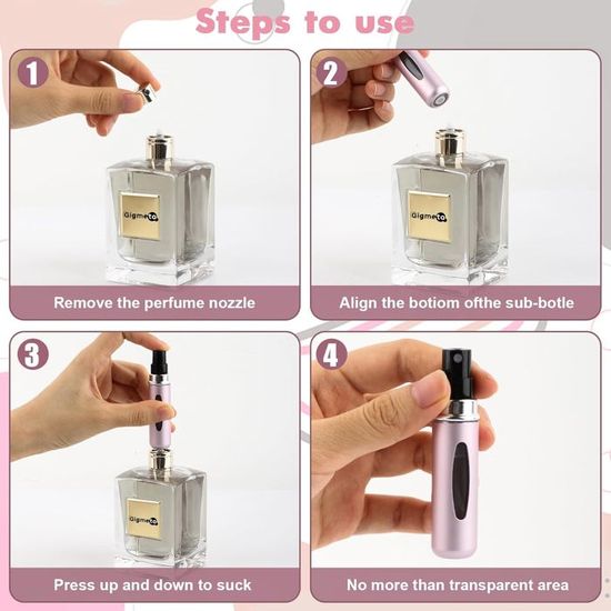 Fenêtre d’observation : Chaque flacon est équipé d’une fenêtre qui vous permet de vérifier le niveau de parfum restant. De plus, choisissez parmi 4 couleurs différentes pour organiser vos parfums selon vos envies.