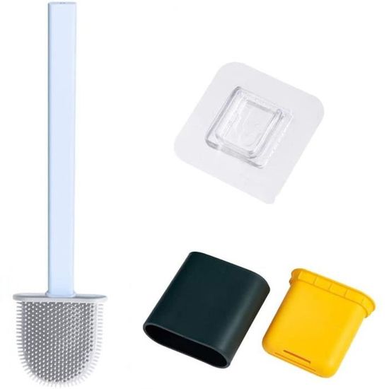 Brosse WC plate en silicone avec support – Ensemble Brosse WC en silicone flexible et support pour salle de bain