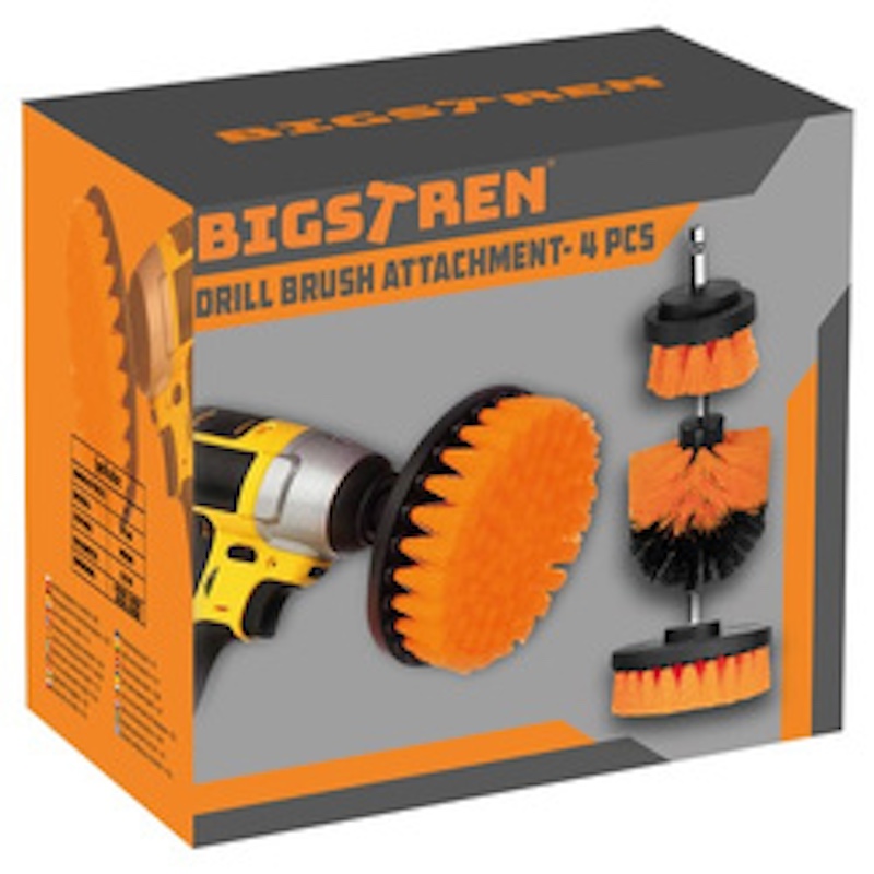 Kit de 4 brosses de nettoyage pour perceuse, polyvalentes et durables. Nettoyage rapide de voitures, maison ou atelier. Poils en nylon non abrasifs, fixation universelle 0,6 cm. Idéal pour jantes, carrelage, joints et surfaces difficiles.