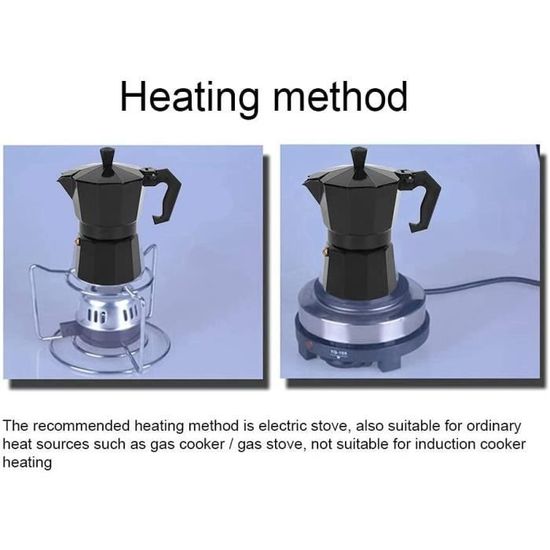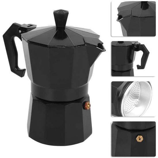 Cafetière Italienne 6 Tasses, Cafetière Moka Pot de Café en Aluminium, 300ml (Noir)