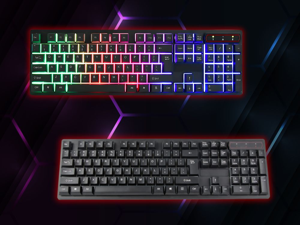 Clavier gaming rétroéclairé LED, touches silencieuses et confortables, anti-ghosting, pavé numérique complet. Ergonomique, durable et résistant aux éclaboussures, il allie performance et style pour jouer, travailler et naviguer avec précision.