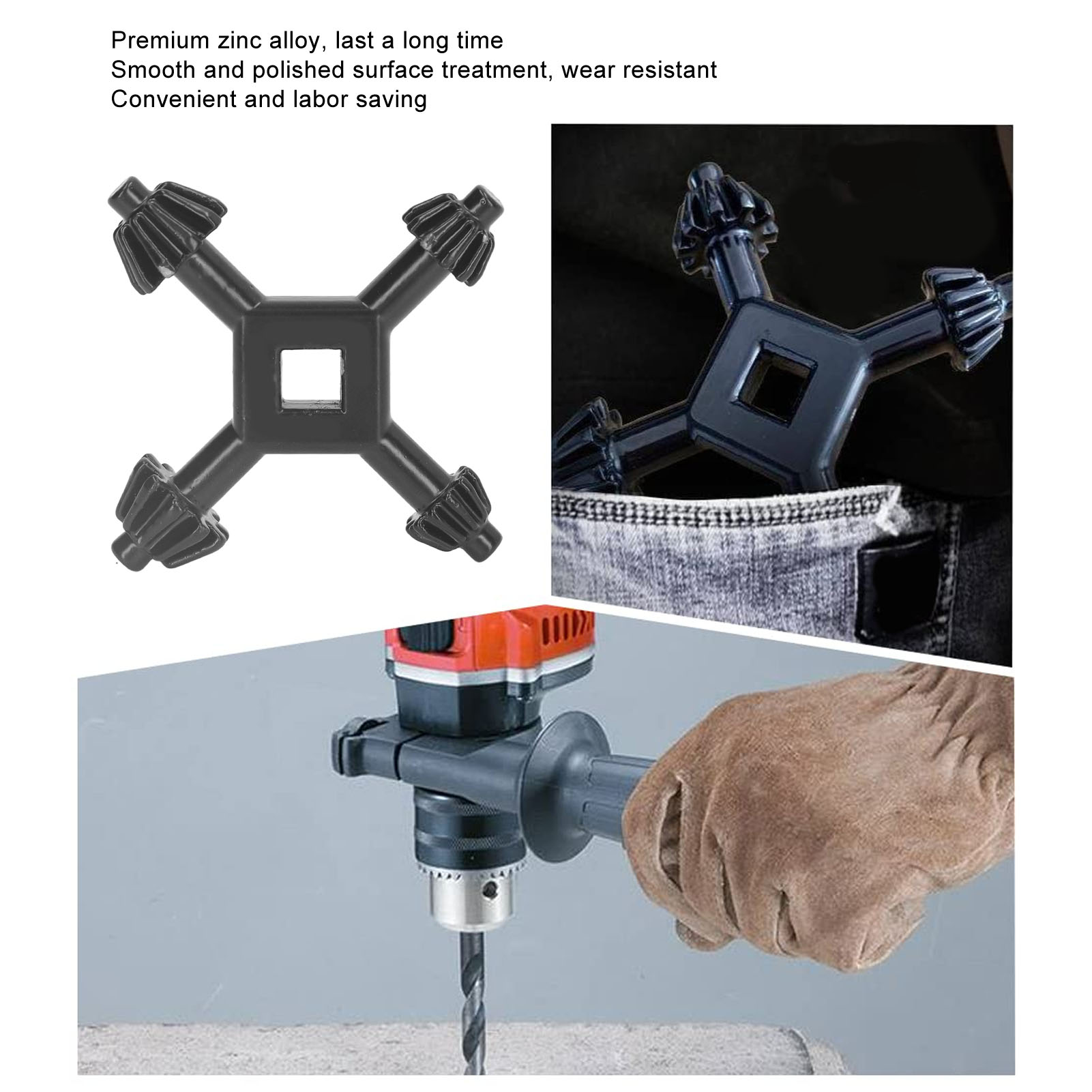 Cocosity Clé de mandrin de perceuse multifonction 4 en 1 en alliage de zinc résistant à l’usure