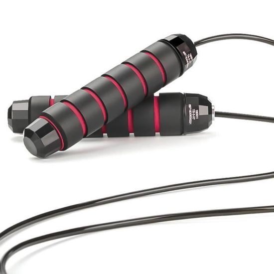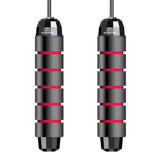 Corde à Sauter – 3M – Ajustable – Câble Acier – Roulement à Bille – Noir et Rouge