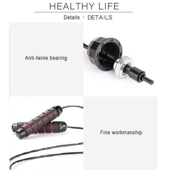 La poignée légère et durable assure une prise en main confortable, tandis que le système de double roulement à billes permet au câble de se déplacer rapidement dans l’air, maximisant ainsi la vitesse de votre entraînement. Que vous soyez novice ou athlète confirmé, cette corde à sauter s’adapte à votre niveau et vous aide à atteindre vos objectifs de fitness.