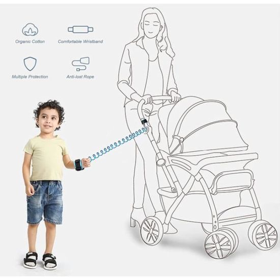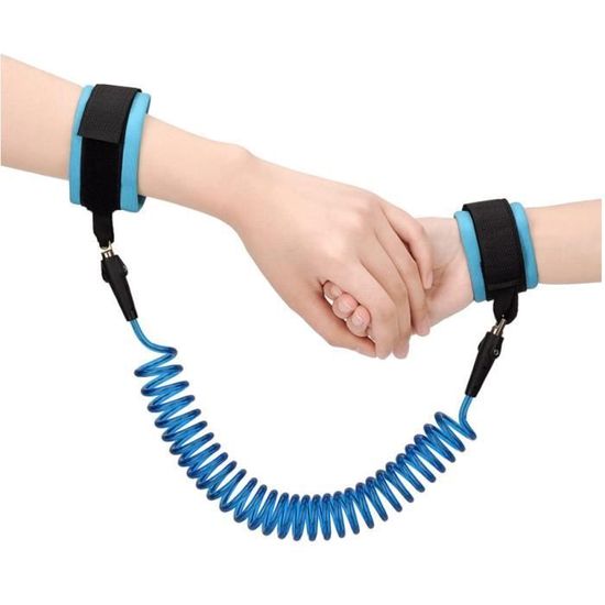 Corde Poignée Anti-Perte Harnais de Sécurité Poignet Bracelet Souple Sangle Ressort d’attache pour Bébé Bambin Enfant Bleu