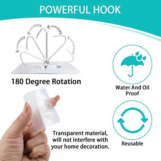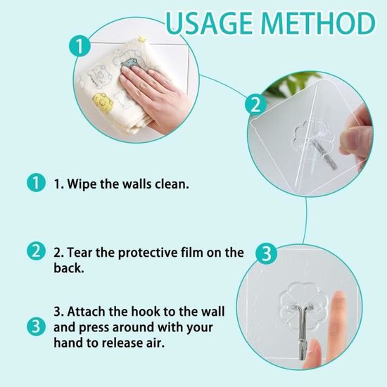 Chaque crochet est doté d’un adhésif puissant qui garantit une fixation solide sur diverses surfaces. Il vous suffit de presser l’adhésif mural contre la surface désirée, et le tour est joué : pas besoin de vis, de colle ou d’outils compliqués. Cette méthode de collage sans couture permet de suspendre facilement vos objets sans créer de trous, préservant ainsi l’intégrité de vos murs.