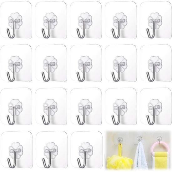 Crochet Adhésif – 18Pcs – Transparent – Fixation Murale sans Percer