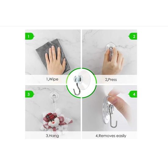Grâce à leur ventouse d’aspiration, l’installation de ces crochets est un jeu d’enfant. Il vous suffit d’appuyer sur la surface où vous souhaitez les fixer, et le tour est joué ! Pas besoin de vis, de colle ou d’outils compliqués. Cela signifie également que vous pouvez les repositionner à votre guise, sans abîmer vos murs.