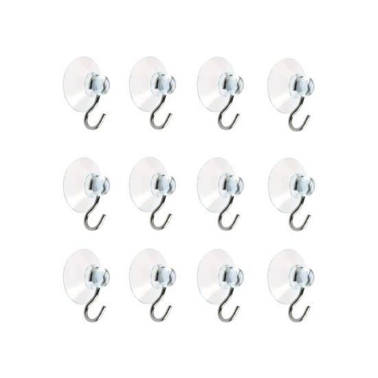 Crochet mural – Non spécifié – Lot de 12 – Ventouse d’aspiration – Plastique – Blanc