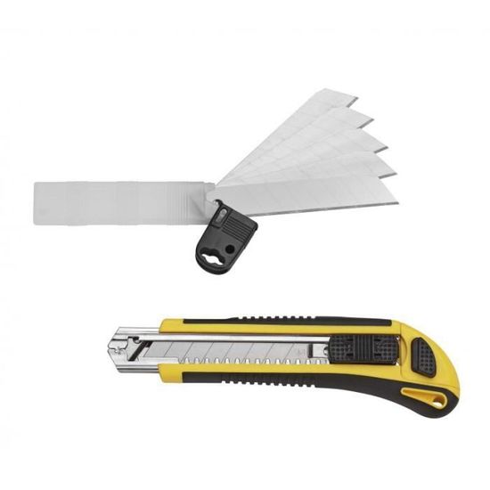 Le cutter est un outil essentiel à posséder dans sa caisse à outils, que ce soit pour des travaux de bricolage à la maison, pour des projets artistiques ou pour des tâches professionnelles. Avec notre cutter lame 18 mm, vous bénéficiez d’un outil polyvalent, robuste et fiable. Ce modèle est livré avec 10 lames de rechange, vous assurant une utilisation prolongée sans avoir à vous soucier de la disponibilité de l’outil. Grâce à sa conception ingénieuse, ce cutter vous permettra de réaliser des coupes précises et nettes sur une large variété de matériaux.