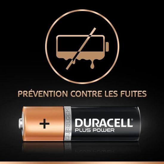 Équipées d’un revêtement Superior Nylon, les piles Duracell Plus Power sont spécialement conçues pour prévenir les fuites, garantissant ainsi la sécurité de vos appareils et prolongeant leur durée de vie. La technologie Duralock permet de maintenir la fraîcheur des piles non utilisées, vous offrant ainsi la possibilité de les stocker jusqu’à 10 ans en conditions ambiantes sans perdre en performance.