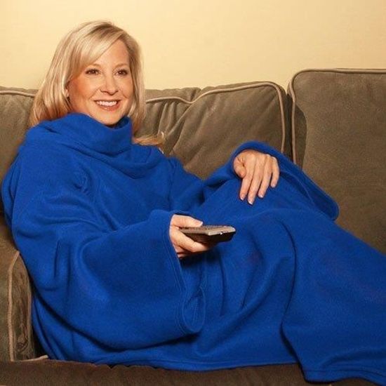 Duvet avec Manches Adulte – Home Winter Warm Fleece Snuggie Couverture Robe avec Manches (Bleu)