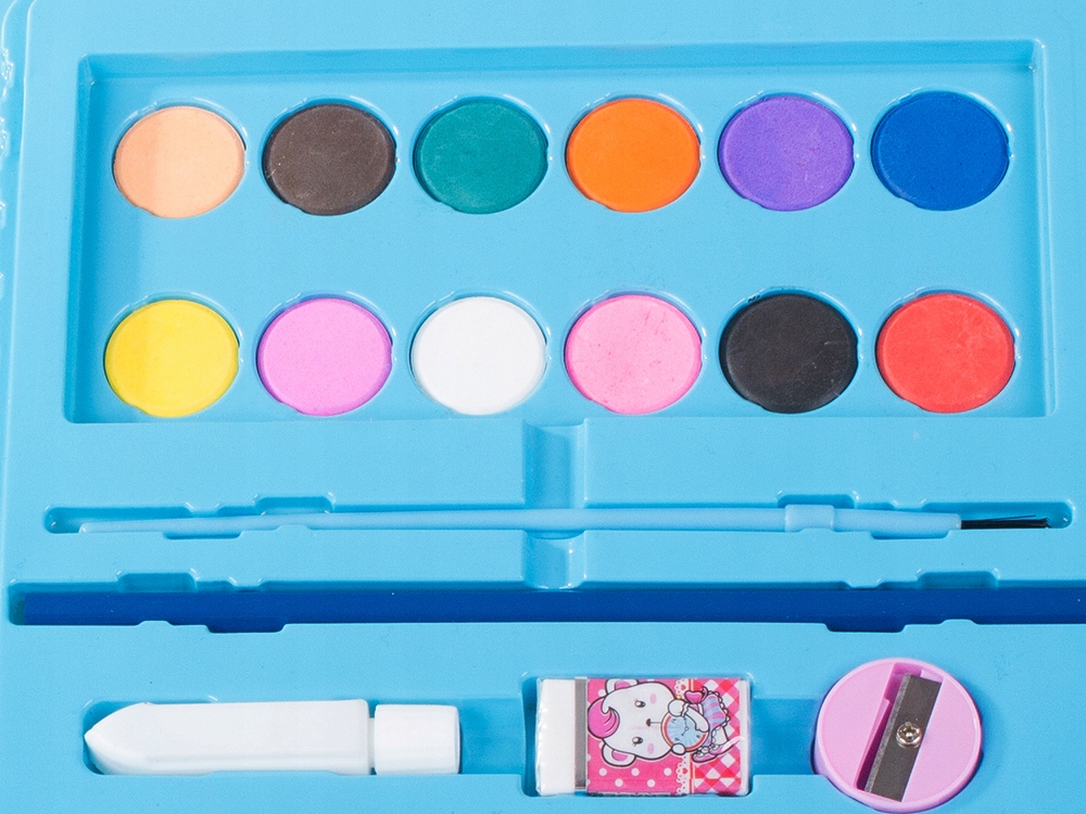 Ce set se distingue par son contenu riche et varié. Avec 68 éléments, il offre tout le matériel nécessaire pour dessiner, colorier et peindre sans limite. Crayons de couleur, feutres, pastels à l’huile, pastels à la cire et peintures aquarelles permettent d’explorer plusieurs techniques artistiques. Les accessoires indispensables comme pinceau, palette, taille-crayon, gomme, colle, règle et trombones complètent ce coffret pour une utilisation immédiate.