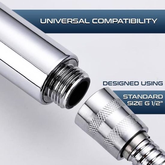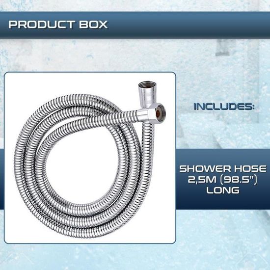 • Longueur Idéale : Avec une longueur généreuse de 2,5 mètres, ce tuyau vous permet d’atteindre facilement tous les recoins de votre douche, sans contrainte.