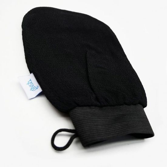 - Rincez-vous soigneusement, puis mouillez votre gant de Kessa avant de commencer l’exfoliation.