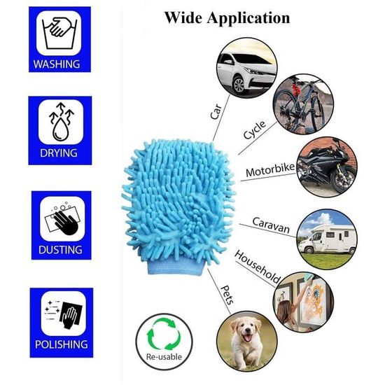 Ces gants de lavage en microfibre sont vos alliés incontournables pour le lavage, le cirage, le dépoussiérage et le lustrage de vos véhicules et de votre maison. Que ce soit pour un nettoyage à sec ou mouillé, ces gants polyvalents peuvent également être utilisés sur du bois, du verre et des miroirs, rendant leur utilisation extrêmement variée.