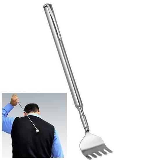 Gratte Dos Main Télescopique Acier Inoxydable Pr Dos Extensible Massager Argenté