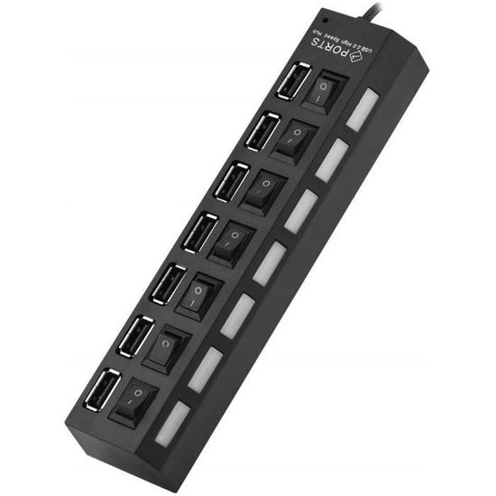 Hub USB – Zerone – 7 Ports – USB 2.0 – Haute Vitesse 480Mbps – Commutateurs Indépendants