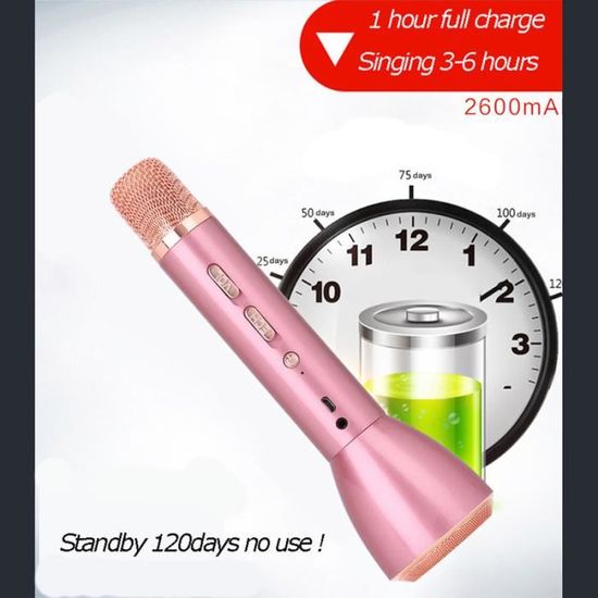 Le K098 est bien plus qu’un simple microphone. Grâce à sa technologie Bluetooth, vous pouvez facilement le connecter à votre smartphone, tablette ou tout autre appareil compatible pour diffuser votre musique préférée. Sa batterie de 2600mAh vous assure plusieurs heures de chant sans interruption, vous permettant de créer des souvenirs inoubliables lors de vos soirées.
