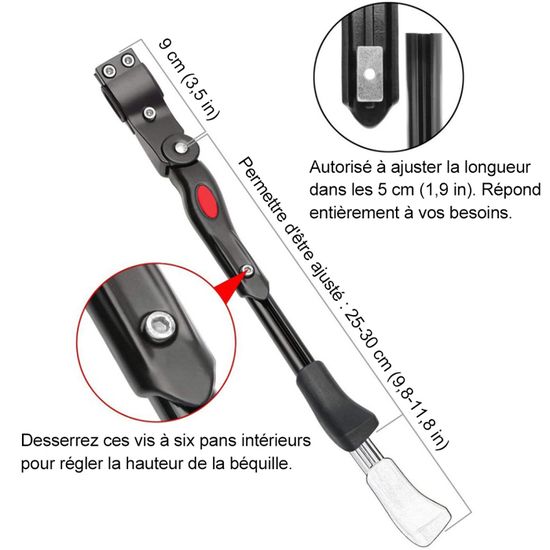 Kit de béquille latérale réglable en aluminium – Accessoire vélo route et VTT Noir