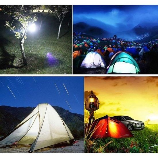 - Contenu : 1 x Lampe de camping solaire (sans batterie) + 1 x Câble chargeur