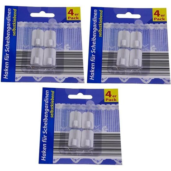 Lot de 12 crochets adhésifs pour rideaux Blanc 486